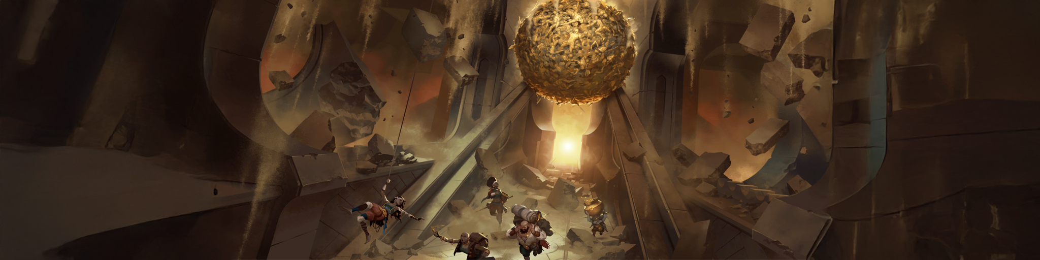 Um mecanismo antigo libera uma esfera de pedra que desce um corredor esmagando tudo no caminho. O truque é ganhar tempo para escapar ou reduzir o ritmo dela.